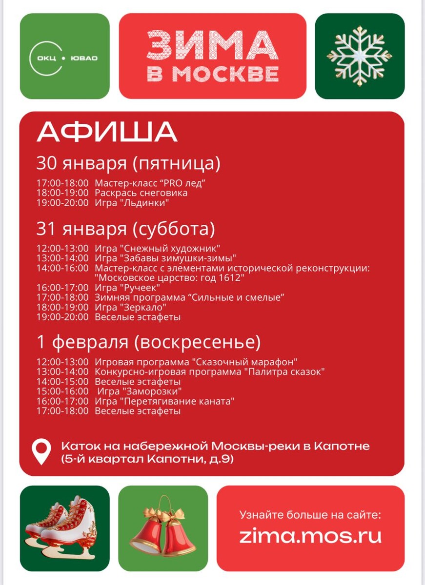 Друзья! Знакомим вас с афишей мероприятий в рамках проекта «Зима в Москве» на ближайшие дни