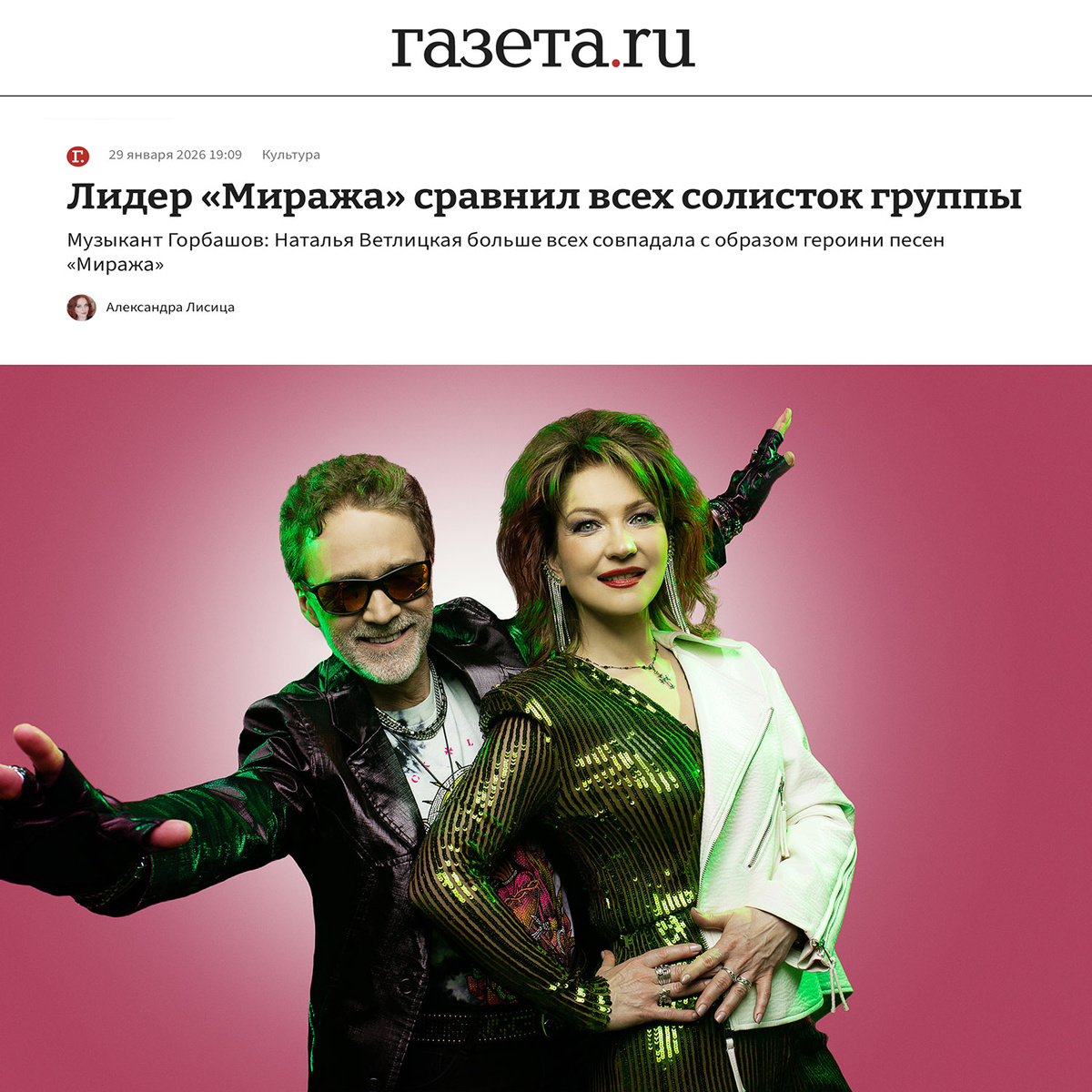 Лидер и музыкант группы «Мираж» Алексей Горбашов сравнил всех солисток, работавших с группой в разные годы. Своими впечатлениями он поделился с «Газетой.Ru». Он отметил, что в то время, когда в группе работали Светлана Разина и Наталья Гулькина, солистки первого состава, был занят записью второго альбома и не гастролировал с коллективом, однако с артистками был знаком. «Не совсем представляю, как они уживались вместе, ведь они абсолютные антиподы по характеру. Светлана резкая и острая на язык, Наталья мягкая и неконфликтная. Мы периодически видимся, рад, что у них обеих сейчас все хорошо», — говорит он. По мнению Горбашова, больше всех совпадала с образом героини песен Наталья Ветлицкая. «Холодная красавица, независимая, немного себе на уме. Она отлично вписалась в группу. Жаль, что мало продержалась», — добавил он. В свою очередь, Ирина Салтыкова, полагает Горбашов, с самого начала понимала, что роль солистки группы «Мираж» — не для нее. «Наверное, поэтому она проработала меньше всех.