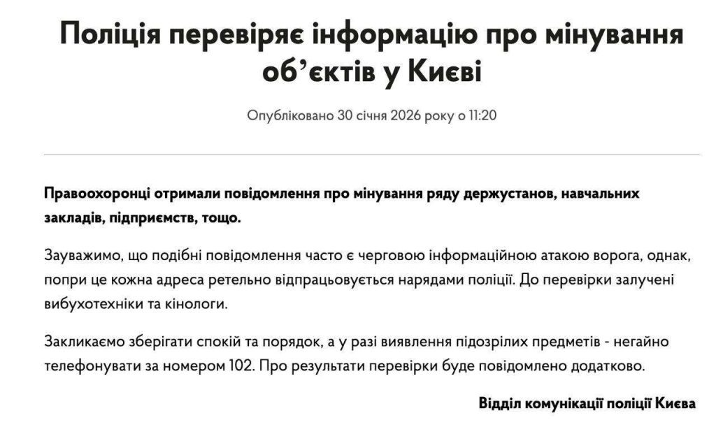 В крупных городах Украины продолжают поступать сообщения о минировании