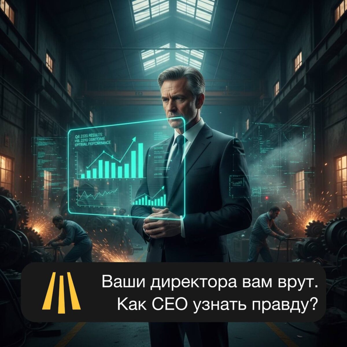 ? ⚡️ Сегодня поговорим о неудобной правде: директора заводов и направлений вам врут. Не потому, что они плохие люди, а потому что в компании создали систему, где за плохие новости наказывают. В итоге собственник получает «вылизанные» отчеты, в то время как на деле завод на грани катастрофы. Идеальные отчеты — это самая дорогая ложь, которую покупает CEO. В проектах с промышленными холдингами этот сценарий повторяется из раза в раз: информация искажается на 10–15% на каждом уровне управления. К моменту, когда отчет ложится попадает на стол гендира, он на 50% состоит из вранья. ⚡️ 200 млн рублей убытка. Всего один промолчавший инженер. В нашей практике был кейс: главный инженер скрыл износ критического узла, чтобы не портить KPI по ремонтам. СЕО не увидел проблему в отчете и не выделил бюджет. Итог: внезапная авария, неделя простоя линии и прямой минус в 200 млн рублей. Один день простоя в тяжелой промышленности стоит от 30 до 70 млн рублей, и это не считая месяцев на восстановление