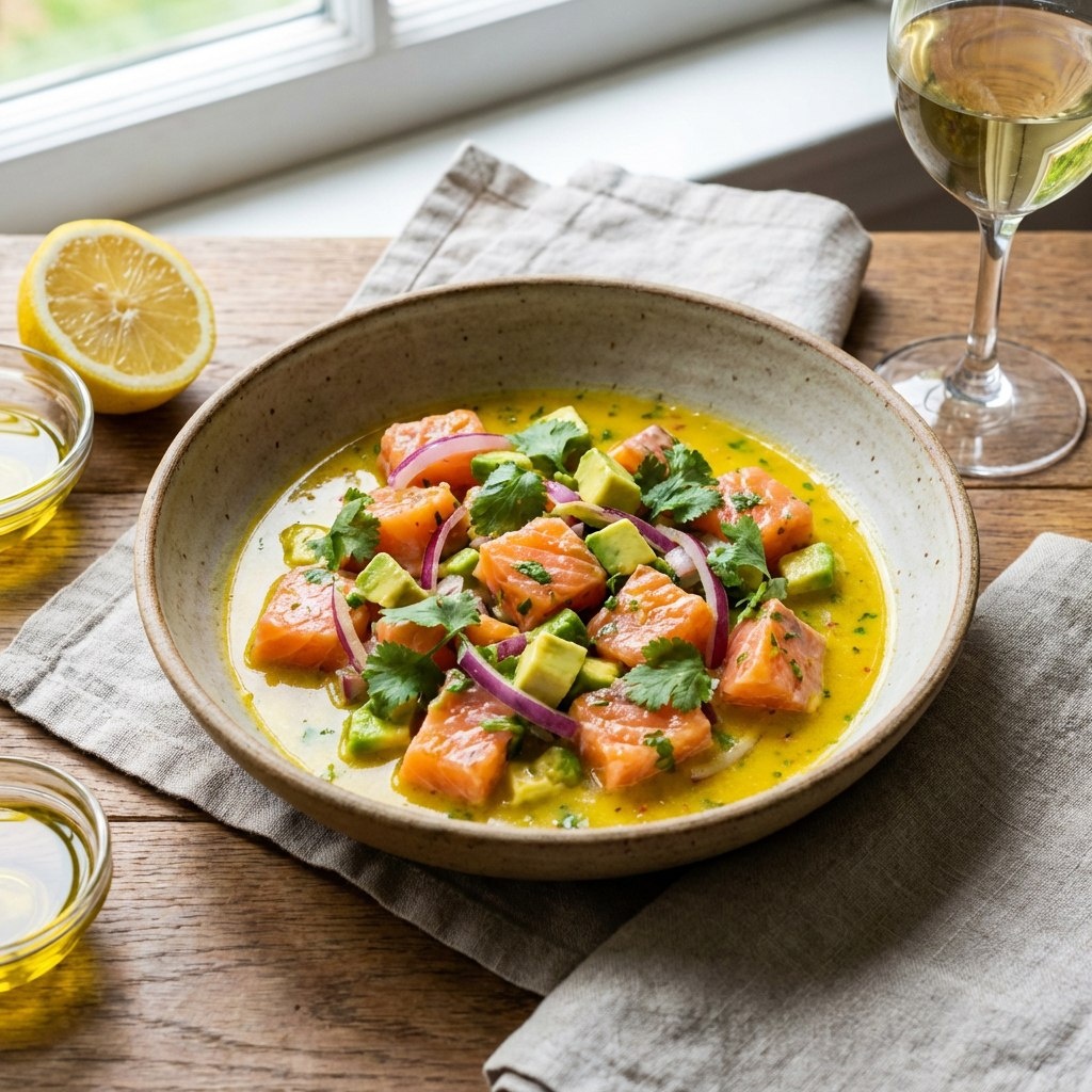 Представьте: не нужно включать плиту, а на тарелке уже лежит нежнейшая, тающая во рту рыба в освежающем цитрусовом маринаде. Это не магия, а севиче — кулинарное чудо Латинской Америки, которое покорило весь мир. Его секрет — в лимонном или лаймовом рассоле, который «приготовит» рыбу за считанные минуты. Сегодня сделаем классический вариант с лососем. Это проще, чем кажется! Шаг 1: Выбираем и подготавливаем рыбу Безопасность и качество — прежде всего. Для севиче нужна самая свежая рыба высшего качества, которую вы бы съели в сыром виде. Идеальный выбор: Филе свежего лосося (подойдет охлажденный норвежский или качественный фермерский). Также отлично подходят сибас, дорадо, тунец. Важное правило: Если сомневаетесь в свежести, используйте замороженную рыбу глубокой заморозки. Замораживание при -35°C и ниже убивает возможных паразитов. Разморозьте ее в холодильнике перед использованием. Подготовка: Филе промокните бумажным полотенцем. Нарежьте его аккуратными кубиками со стороной 1-1,5 см.