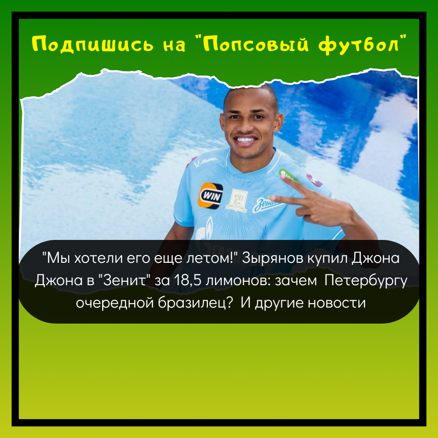 "Мы хотели его еще летом!" Зырянов купил Джона Джона в "Зенит" за 18,5 лимонов: зачем Петербургу очередной бразилец? И другие новости