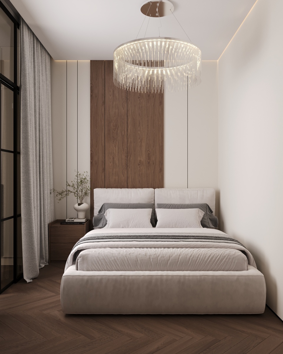 · Функция 3 в 1: Один элемент решает три задачи: хранение (гардероб), зонирование (отделяет спальню) и создает архитектуру (формирует геометрию и динамику в комнате).