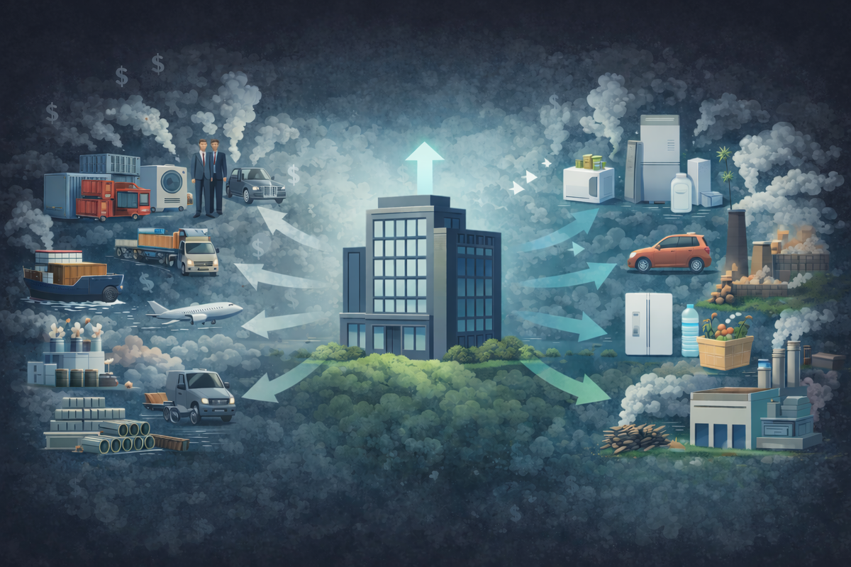 Scope 3 — «тёмная материя» углеродного следа В углеродной отчётности есть зона, которую долго предпочитали не замечать. Она не лежит на поверхности, плохо поддаётся измерению и при этом формирует 70–90% совокупного климатического воздействия компании или продукта. Речь о Scope 3 — косвенных выбросах в цепочке создания стоимости. Именно здесь углеродный след перестаёт быть бухгалтерским упражнением и превращается в стратегический вопрос: о рисках, конкурентоспособности и реальной ответственности бизнеса. Scope 3 — это выбросы, связанные с деятельностью компании, но происходящие из источников, которыми она не владеет и не управляет напрямую. Они возникают у поставщиков, логистических партнёров, клиентов, инвестируемых компаний — и именно поэтому долгое время оставались «за скобками». Парадокс Scope 3 в том, что он косвенный, но зачастую самый значимый. Компания может рапортовать о снижении выбросов на собственных объектах (Scope 1–2), при этом её полный углеродный след — за счёт цепочки