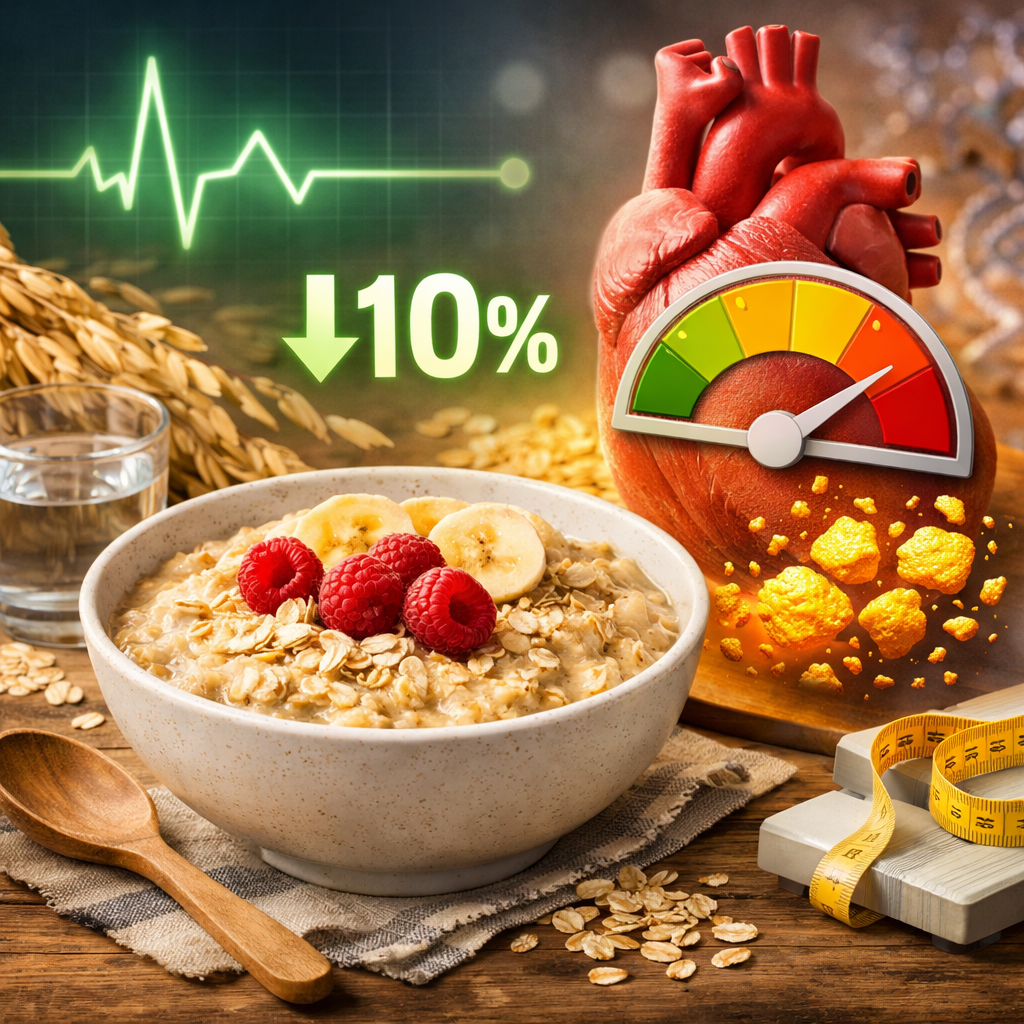 Иногда самые сильные научные результаты выглядят подозрительно простыми. Два дня. Обычная овсянка. Минус 10% «плохого» холестерина — и эффект держится полтора месяца. Не добавка за сотни евро, не экспериментальный препарат, а каша, знакомая каждому с детства. Именно это и делает новое исследование University of Bonn, опубликованное в Nature Communications, по-настоящему интересным. Речь идёт не о наблюдении «кто-то ел овсянку и стал здоровее». Это рандомизированное контролируемое исследование — золотой стандарт науки. Люди с метаболическим синдромом (лишний вес, давление, высокий сахар и липиды) на два дня переходили почти полностью на овсянку: