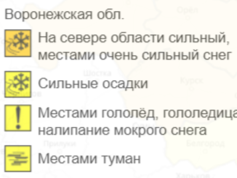 Жителям северных районов Воронежской области следует подготовиться к сложным погодным условиям. По данным синоптиков, в субботу, 31 января, на территории региона ожидается опасное метеорологическое явление. Как показывают прогностические карты гидрометеорологического центра, с сегодняшнего дня в области действует «оранжевый» уровень опасности. Это означает высокую степень риска возникновения чрезвычайных ситуаций. В ближайшие 24 часа погода резко ухудшится. Местами, особенно по северу области, прогнозируется очень сильный снег, интенсивные осадки. Сложность ситуации будет усугубляться комплексом сопутствующих явлений: ожидается гололед, гололедица на дорогах и тротуарах, а также налипание мокрого снега на проводах и деревьях, что может приводить к их обрыву. Местами видимость будет ухудшена из-за тумана. При этом непогода не отступит быстро. В течение последующих 24-48 часов осадки продолжатся. Синоптики прогнозируют сильный, а местами вновь очень сильный снег. Рекомендации для жителей