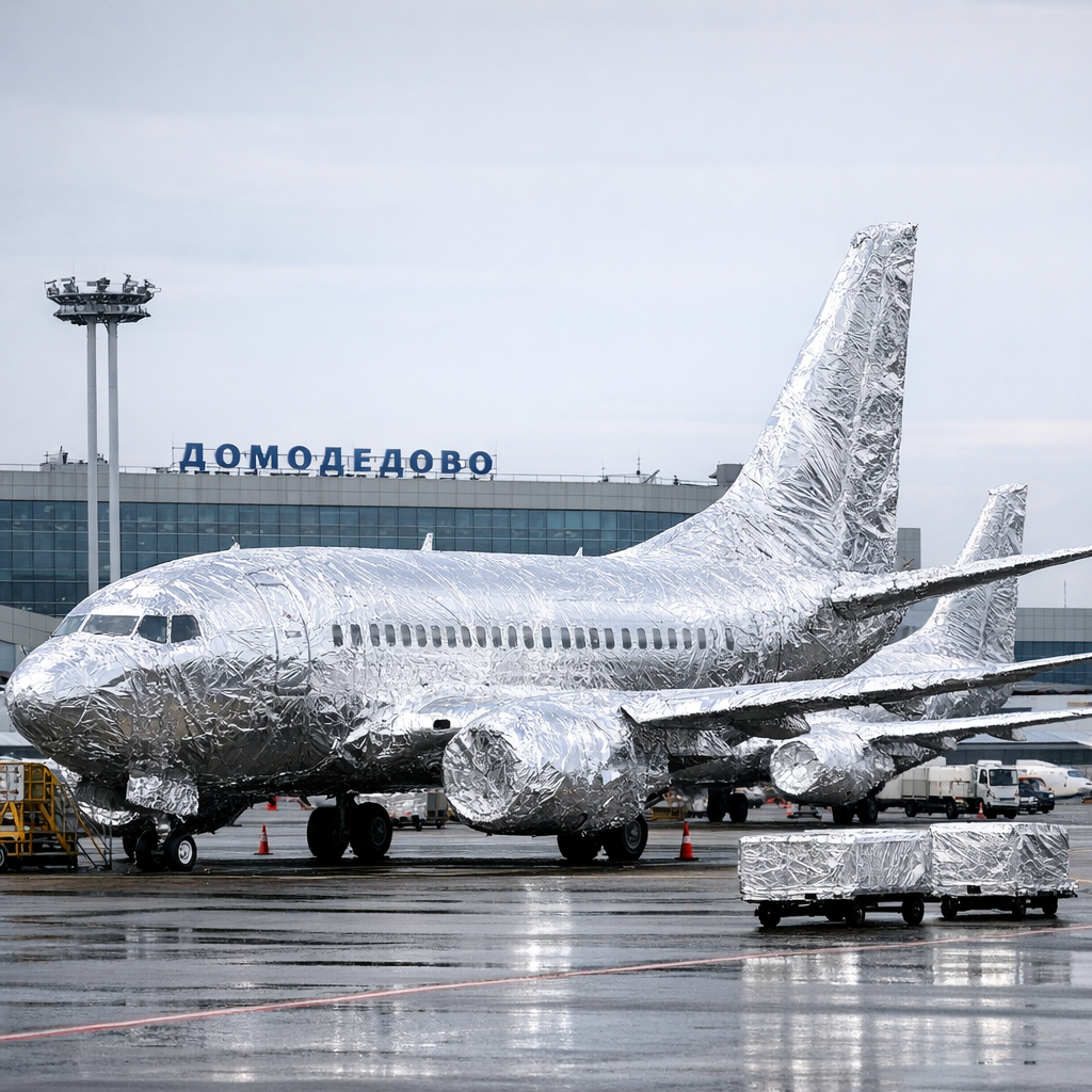 В последние годы московский аэропорт Домодедово стал ареной странного и тревожного явления: самолёты, припаркованные на открытых стоянках, начали укутывать в фольгу. Не шутка — это реальность, где фюзеляжи Boeing и Airbus обматывают алюминиевой плёнкой, словно гигантские новогодние подарки. Что это: конспирология, экологический тренд или вынужденная мера в новых реалиях авиации? Разберёмся по полочкам, опираясь на официальные источники, экспертные мнения и свежие данные на январь 2026 года.