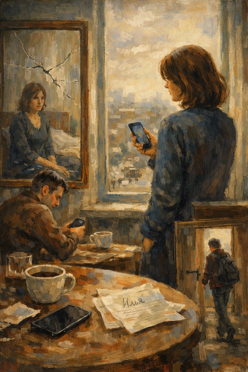 Все главы Кофе остыл быстро — как будто нарочно. Марина заметила это только тогда, когда сделала первый глоток и поморщилась. На часах было 6:47. За окном — серый, ничем не примечательный мартовский рассвет. Такой же, как вчера. И позавчера. И, кажется, все последние годы. Андрей сидел напротив, пролистывая новости в телефоне. Он не поднимал головы. Большой палец машинально скользил по экрану — вверх, вниз, вверх. Движение было отработано до автоматизма, как дыхание. Они завтракали вместе, но каждый — отдельно. — Ты сегодня рано, — сказала Марина, просто чтобы нарушить тишину. — Ага, — отозвался он, не глядя. — Совещание перенесли. Она кивнула, хотя он этого не видел. Между ними давно завелась эта странная привычка — отвечать жестами в пустоту. Марина смотрела на его руки. Когда-то она считала их красивыми: длинные пальцы, чуть заметные вены, уверенные движения. Сейчас руки казались чужими. Как будто принадлежали не мужчине, с которым она прожила пятнадцать лет, а кому-то случайному, в