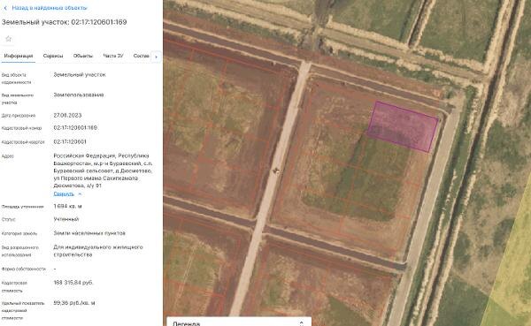 Название: Земельный участок с кадастровым номером: 02:17:120601:169, категория земель: Земли населенных пунктов, площадью 1694 кв.м