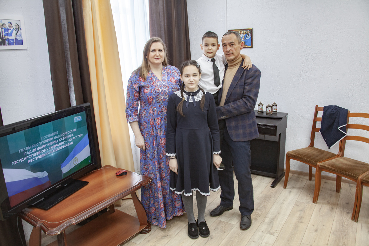 Глава Республики Башкортостан Радий Хабиров обратился с ежегодным Посланием к Государственному Собранию - Курултаю, определив стратегические цели и конкретные задачи на ближайшую перспективу. Прямую трансляцию выступления главы региона смотрела вся республика, от крупных городов до самых отдалённых сёл. С особым вниманием слушали Радия Хабирова и жители Стерлитамакского района. Не осталась в стороне и семья Ахмеровых из села Рощинский. Это творческая семья - живое воплощение ценностей, которые несёт в себе Год большой и дружной семьи в Башкортостане. Супруги Рустам и Анна - пример трудолюбия и целеустремленности. Союзу Ахмеровых 23 года. В семье четверо детей, которые с юных лет вовлечены в общественную жизнь района и республики. Напомним, Ахмеровы стали известны всей стране после победы во всероссийском конкурсе «Семья года» и встречи с Президентом России Владимиром Путиным. Памятный снимок с главой государства стал по-настоящему семейной реликвией и украшением дома семьи. - Просмотр