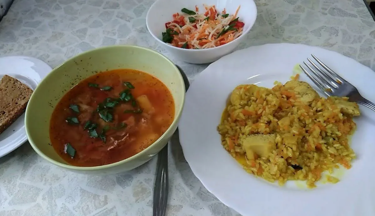 Стоимость порции: 22 руб. - Обед: вчерашний суп с фрикадельками.