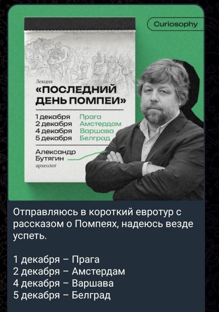 Полагаю, что все в курсе декабрьской новости про задержание археолога Александра Бутягина в Польше в связи с запросом украинских спецслужб. Сейчас, насколько я понимаю, решается вопрос о его экстрадиции на Украину. Бутягина обвиняют в том, что он проводил раскопки в Крыму после вхождения региона в состав Российской Федерации. Понятное дело, что политическое украинство - вещь абсолютно неизлечимая. И я совсем не об этом хотела бы порассуждать в этой связи. Меня во всей этой истории изначально заинтересовал вопрос, с какой целью Бутягин поехал в такое вот европейское турне в текущих реалиях. Ну он же, наверное, в курсе этих реалий? И тем не менее он поехал с лекциями в турне по европейским странам, включая совсем уж оголтелую в своей русофобии Польшу. Для чего? Какова была изначальная цель этих лекций? Это что, было что- то сверхсрочное, чего никак нельзя было отложить, что называется, до лучших времен? Сам Бутягин еще до начала своего лекционного турне прорекламировал его, сделав пометк