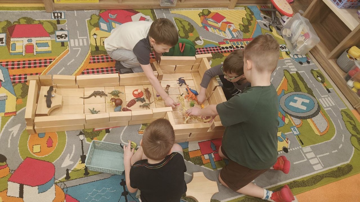 Технологию «Река времени» использовала с ребятами воспитатель Светлана Геннадьевна Петренко, чтобы погрузиться… в мир динозавров! «Дети подготовительной группы Любознайки приносят в группу разные игрушки. И часто это динозавры. Сложно поверить, что когда-то на нашей планете жили такие интересные животные! Необычные гигантские чудовища поражают наше воображение. Кто такие динозавры?Какие они были, чем питались, где и как жили, какого размера были?Почему вымерли? Мы с ребятами решили узнать ответы на эти вопросы. Мы изучили энциклопедии, книги, совершили виртуальную экскурсию в палеонтологический музей, посмотрели презентацию о жизни динозавров. В работе над этой темой я использовала технологию «Река времени» (автор Н.А. Короткова) – это форма познавательно-исследовательской деятельности, которая предполагает визуальное представление временной шкалы в форме реки. Течение воды символизирует ход времени: древность, наше время, будущее. Мы решили представить, какими бы были динозавры, если