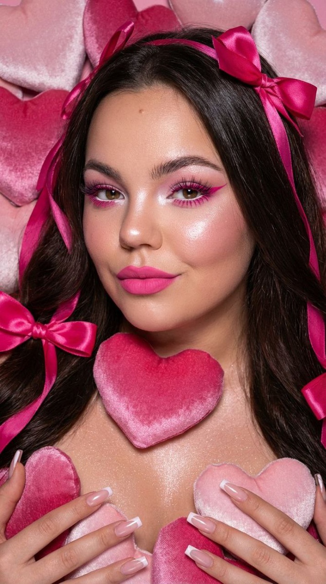 😀Выбираем "нейросети" 😀Нажимаем "Nano Banana" 😀Нажимаем "Nano Banana Pro" 😀Прикрепляем через скрепку свое фото и выбранный промпт 😀Наслаждаемся результатом😍 Сохрани внешность, пол и возраст. Использовать реальные черты лица человека с референса, естественную текстуру кожи и настоящий цвет и длину волос. Личность должна оставаться неизменной. Создай крупный план лица девушки в стиле "высокой моды". Волосы распущенные, очень длинные, блестящие. Заплетены в насыщенно розовые ленты к верху и ленты в банты, они свисают на лицо. Элегантный макияж глаза с длинными острыми насыщенно розовыми стрелками снизу, тени нежно розовые, ближе к носу белые блестящие тени переходящие в хайлайтер на край глаза, длинные густые ресницы эффект лучики. Нижние ресницы накрашены ярко розовым, на каял карандаш на нижнем веке белый. Хайлайтер во внутренних уголках и скулах. Губы слегка приоткрыты в легкой ухмылке, матовые, ярко розовые . Голова наклонена в сторону, локон волос падает на лицо В руках у неё