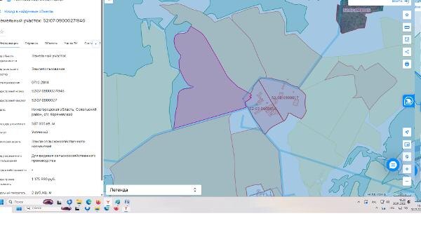 Название: Земельный участок площадью 587 995 кв.м., расположенный по адресу: Нижегородская область, Сокольский район, с/с Кореневский