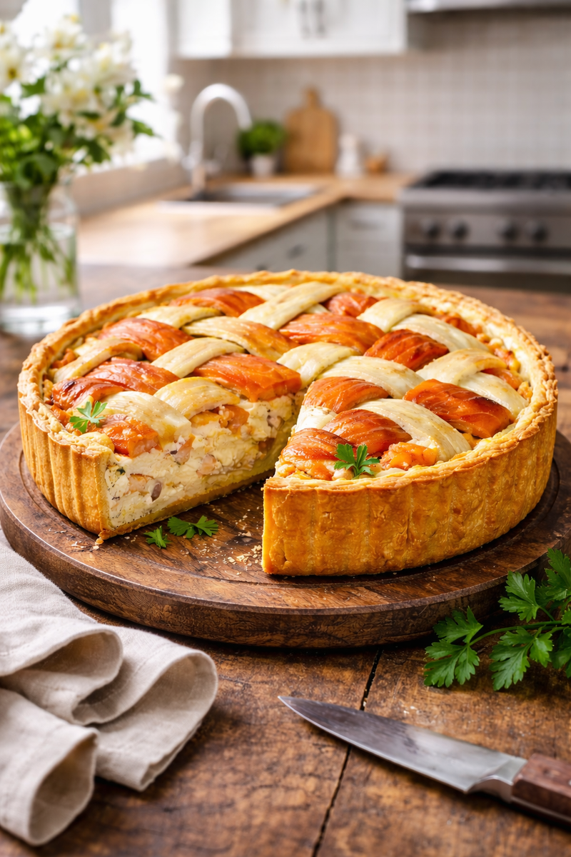 Киш — это тот самый французский пирог, который выглядит эффектно, а готовится гораздо проще, чем кажется. В этом варианте он особенно хорош: два вида копчёной рыбы, сливочно-сырная заливка и рассыпчатое тесто. Получается очень нежно, ароматно и по-настоящему празднично. Подавайте его горячим или тёплым — обязательно с простым зелёным салатом. Просейте муку с солью в миску.