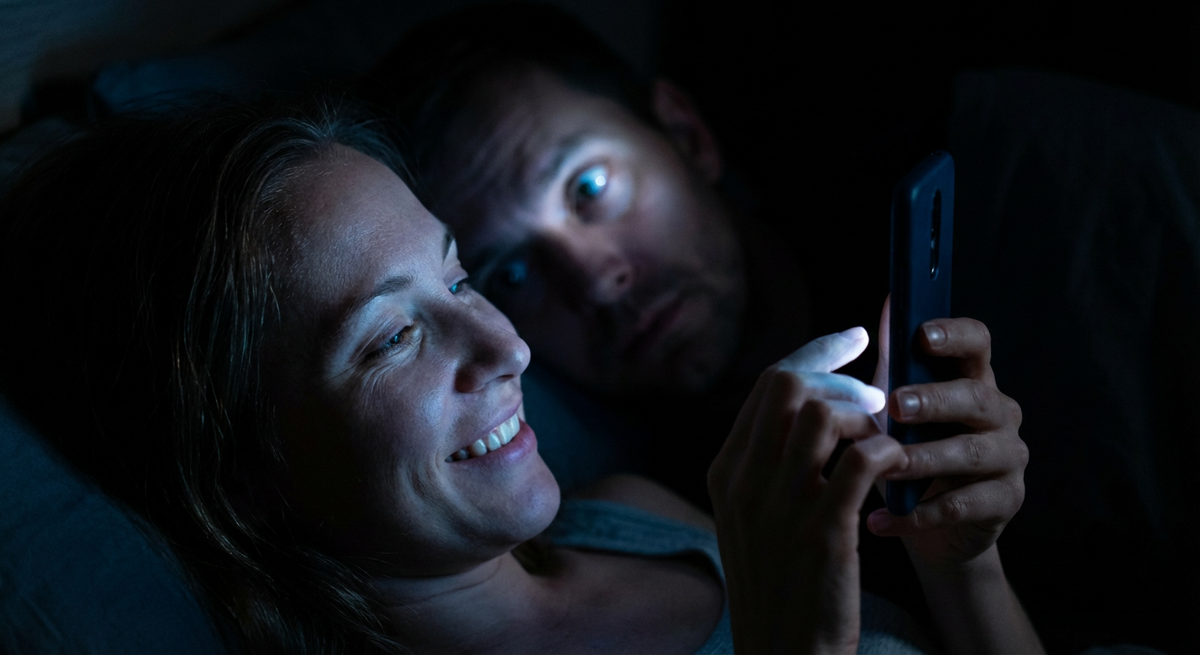 Ночью того же дня он проснулся от странного чувства. Он повернулся и увидел: Лена лежала на левом боку, лицом к нему. В руке у неё был телефон, и синий свет экрана освещал её улыбающееся лицо. Она что-то быстро печатала, и её пальцы летали по клавиатуре с непривычной быстротой. Она выглядела… счастливой. Такой, какой не была с ним уже давно.