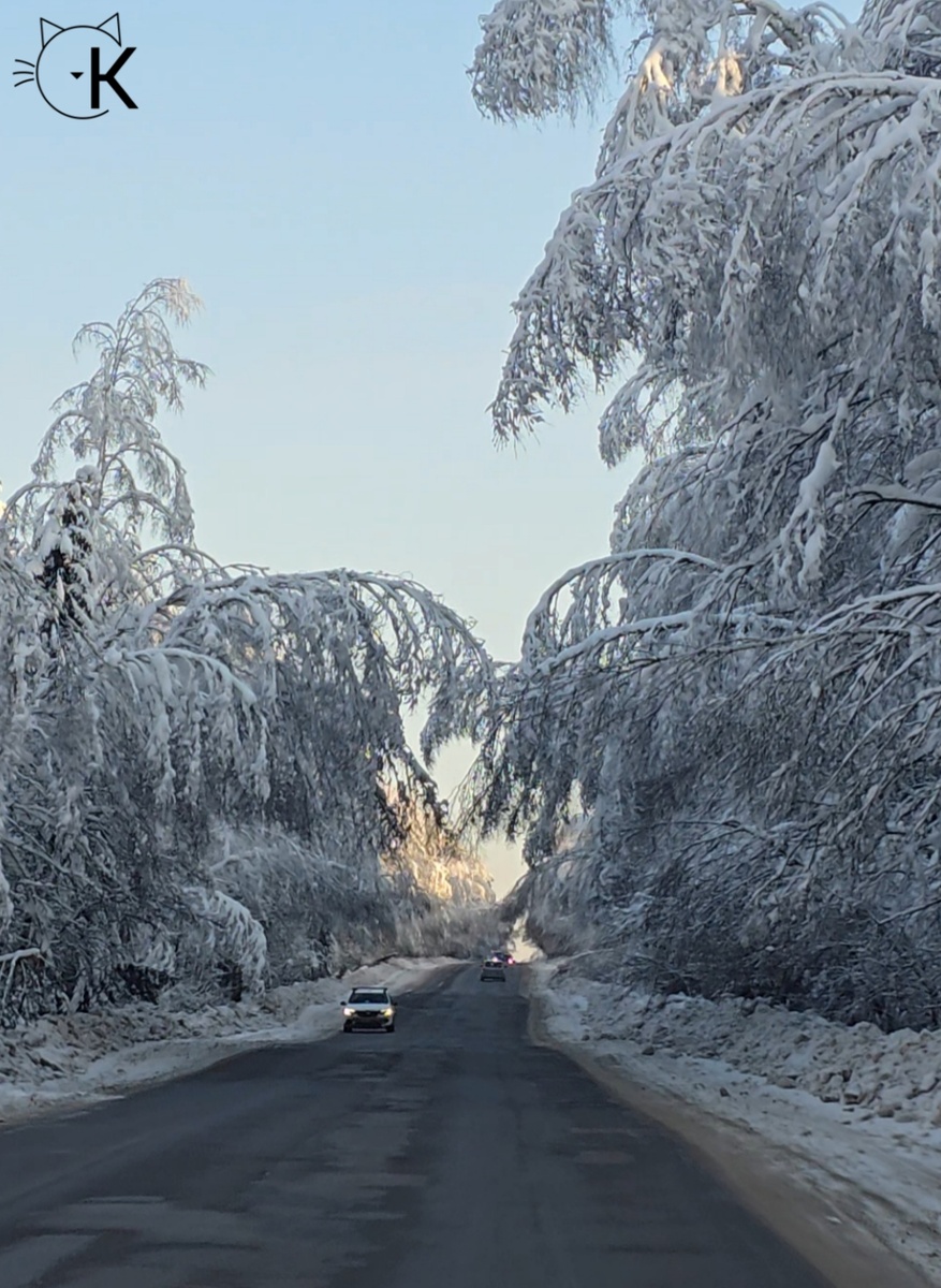 Ехали мы по заснеженной дороге, окружённой густым лесом. Ветви деревьев были покрыты снегом настолько, что создавалось ощущение, будто проезжаем сквозь снежные арки.