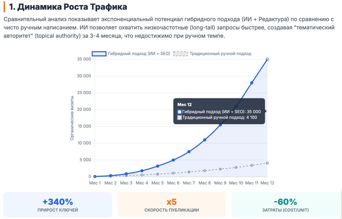 Этот метод исключает галлюцинации искусственного интеллекта и позволяет создавать экспертные материалы, насыщенные реальными данными, что критически важно для SEO.22