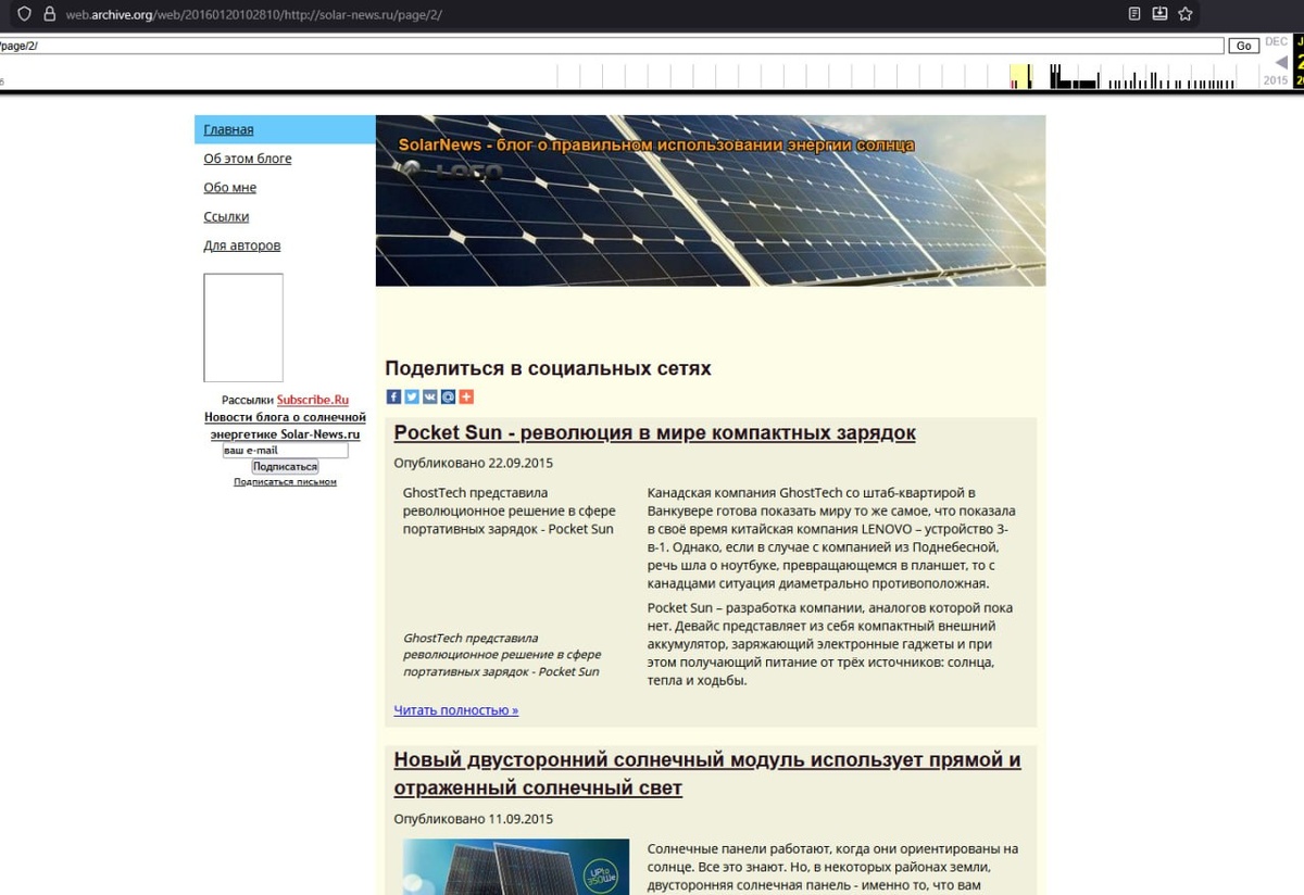 Я же рассказывал, что текущая версия сайта Solar-News.ru – это уже третья итерация после двух невозвратно потерянных? Ну, если вы всё-таки хотели бы узнать, как он выглядел раньше, то WebArchive всё помнит :) И да, сайт для того, чтоб делиться новостями солнечной энергетики, я создал в 2014-м году, а подкаст – в 2017-м (вот первый выпуск). Так что в следующем году будем праздновать юбилей. А пока – всех с пятницей! Кстати, в 2015-м канадские ребята ещё только-только собирались начать производить двусторонние солнечные модули, а сейчас, через 10 лет, мы уже и не представляем, что можно как-то по-другому, да? @solarnews #сайт #подкаст #солнечныйоффтоп