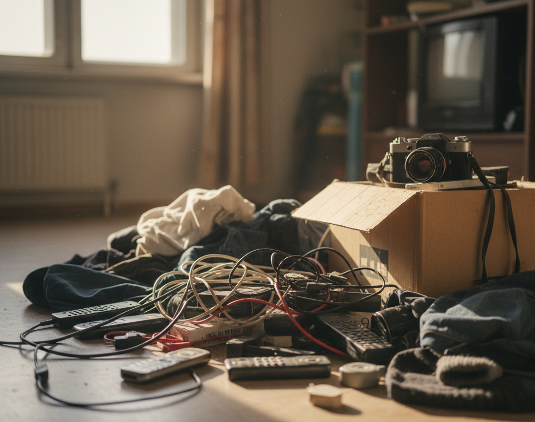 Чувство, когда открываешь дверцу шкафа, а оттуда на тебя вываливается лавина? Старые провода, коробки от телефонов, куртка, которая «наверное, еще пригодится на даче», и тот самый советский объектив дедушки, которым никто не снимал с Олимпиады-80.