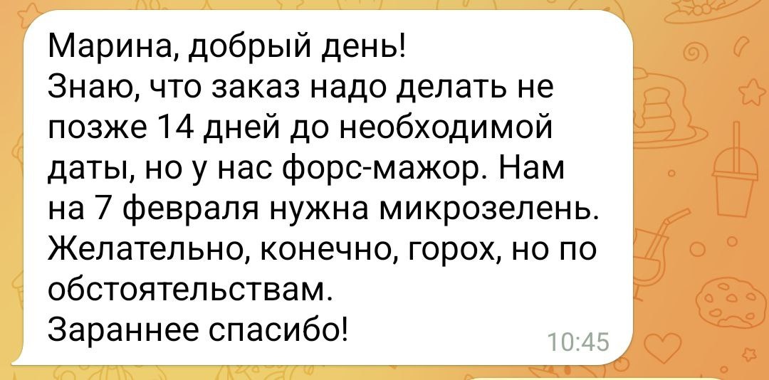 ! Ничто так не возвращает в русло дел, как срочный заказ! Да, времени для гороха мало, но я рискнула. Посмотрим на результат. Естественно, что для подстраховки я еще предложу 2 вида редиса и кресс-салат. А там уже на усмотрение заказчика.