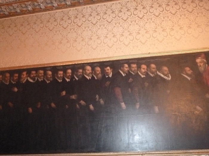 И еще в одном из залов дворца Дожей , сфотографировала средневековую картину , которая называется " Визит цеха обувщиков к Дожу" , но видевшие её русские называют " Третий съезд РСДРП", настолько похожи нарисованные обувщики из средневековья на реальных исторических персонажей 19 века. А над "портретом " В.И. Ленина надпись Stella , что значит в переводе- звезда».