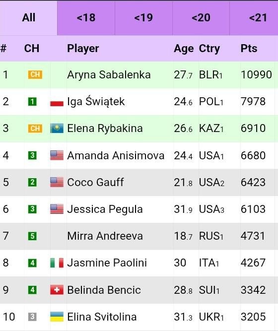 : 🎾 Соболенко по-прежнему #1 с большим отрывом. 🎾 Швентек #2, но обычно она лучше играет на грунте, чем на харде. На Australian Open вылетела в 1/4. 🎾 Рыбакина сыграет против Соболенко в финале Australian Open. 🎾 В топ-10 сразу три американки. 🎾 Из всех теннисисток топ-10 только у Соболенко и Швентек есть несколько титулов Grand Slam. Подпишись на Эйс и точка