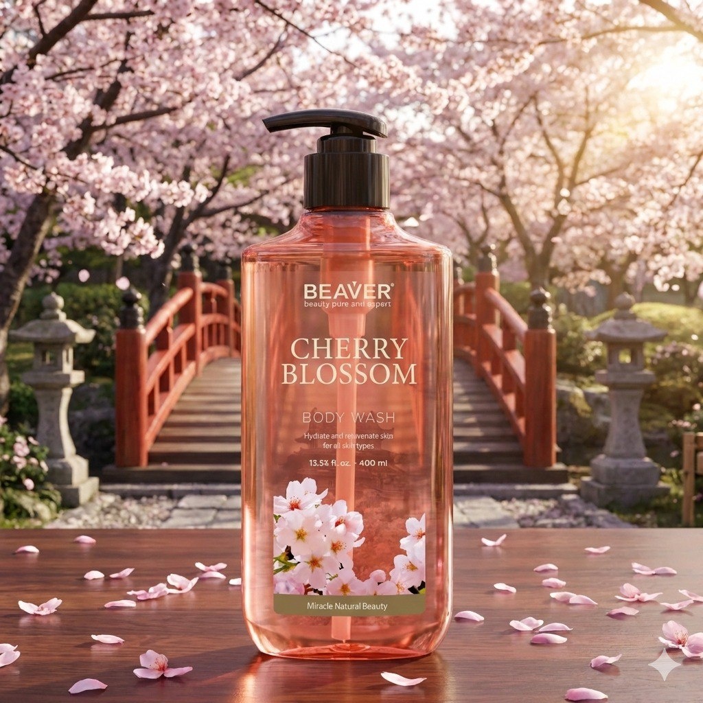 Увлажняющий гель для душа BEAVER с экстрактом цветка вишни превращает обычный уход в маленький ритуал