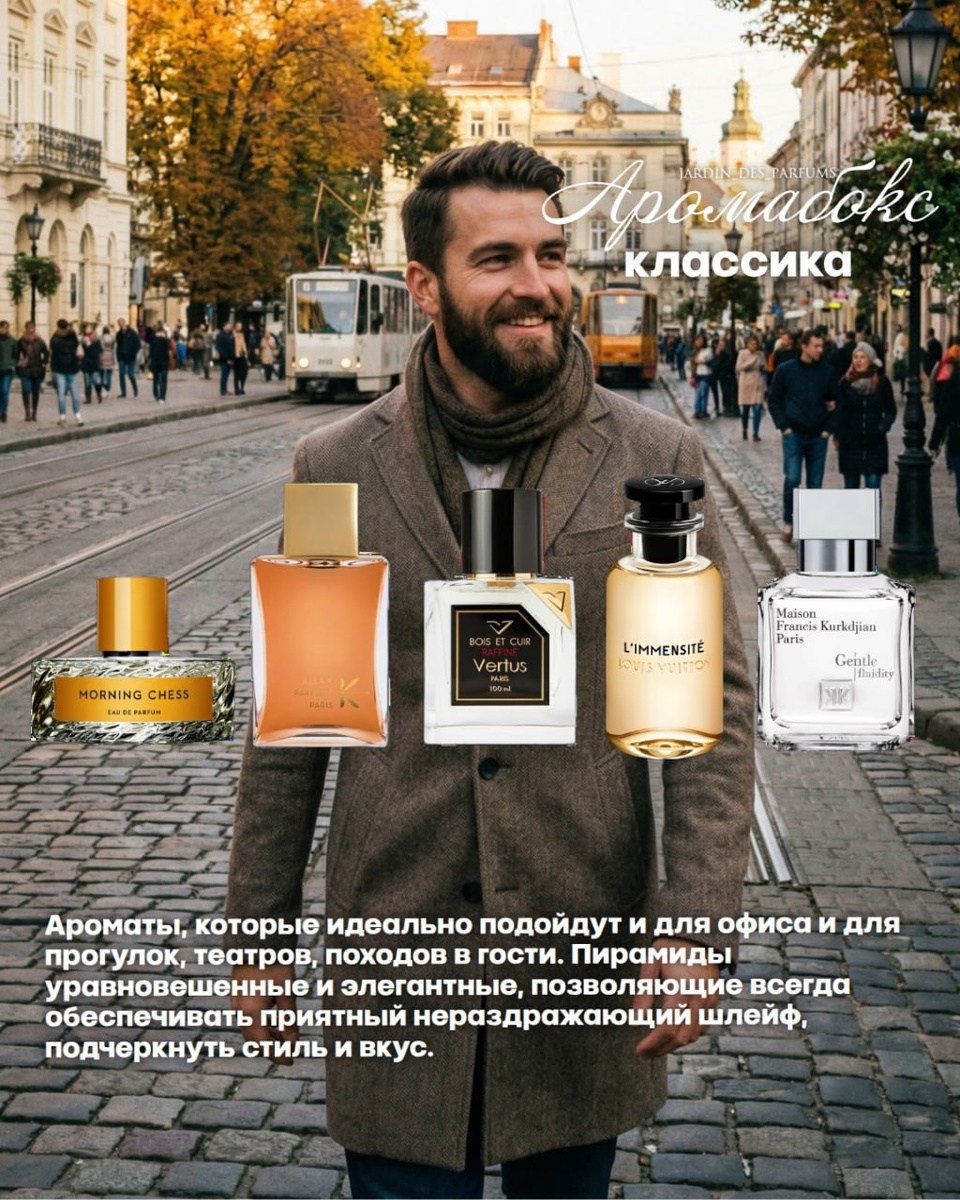 Аромабокс "Классика" Vilhelm Parfumerie Morning Chess Ella K Parfums Cri Du Kalahar Vertus Bois et Cuir Raffine Louis Vuitton L'Immensite Maison Francis Kurkdjian Gentle Fluidity Silver