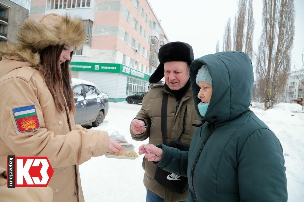27 января исполнилось 82 года со дня полного освобождения Ленинграда от фашистской блокады. Кусочек хлеба – его ценность как никто понимали жители Ленинграда, окружённые плотным кольцом блокады. В годовщину освобождения города, 27 января, страна вспоминает о том страшном времени. На героическом примере ленинградцев сегодня воспитывается молодое поколение. Юные воспитанники ОПК «Октава» ежегодно проводят акцию «Блокадный хлеб», раздавая его прохожим. Автор: Регина КУЗНЕЦОВА. Юнармейцы Богдан и Полина предлагали прохожим те самые 125 граммов хлеба – минимальная дневная норма, введённая в Ленинграде в конце осени 1941 года. Напоминая об этом нефтекамцам, задумались: а смогли бы они сами выдержать такое? - Не знаю. Наверное, нет, - говорит Полина. – Я думаю, они смогли это вынести из-за огромного желания жить и бороться. Очень жаль людей, которые пережили это. Ученики городских школ собрались в «Октаве», чтобы вспомнить и почтить память людей, умиравших от голода, но не сдавших Ленинград.