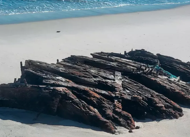 Штормовые волны на пляже в США обнажили из-под песка останки затонувшего в 19 веке деревянного судна