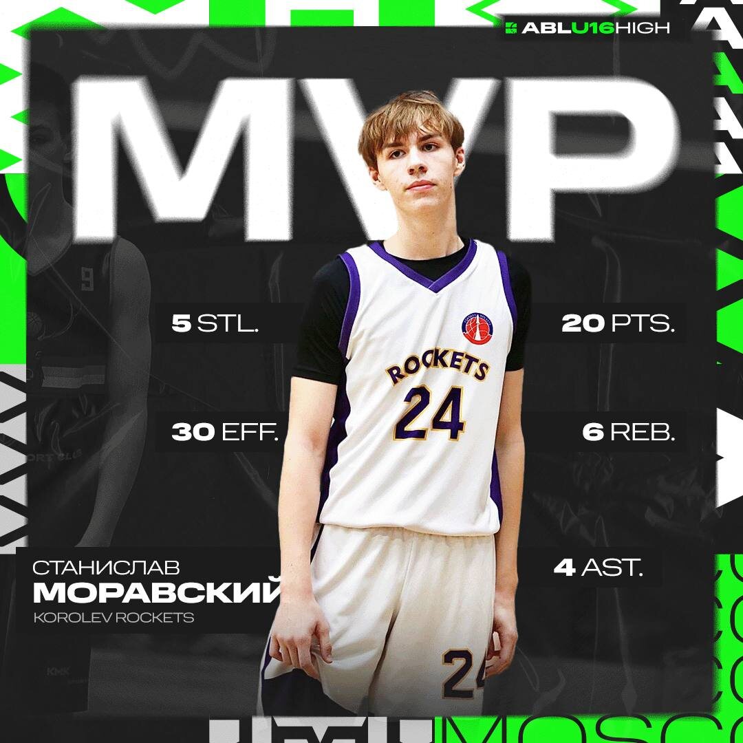 Моравский Станислав (Korolev Rockets) vs Спортивный клуб «Вектор» U16 High 10 тур 41:33 20 очков, 6 подборов, 4 передачи, 5 перехватов, 30 эффективность Моравский проводит сильный сезон и его игра против "Вектора" очередное этому доказательство. Начав встречу с холодной серии 0 из 6 в первой четверти, Станислав подправил прицел и забил 20 очков за 28 минут. Помимо скоринга Моравский отметился и в других аспектах игры, став лидером встречи по передачам и перехватам. Благодаря уверенной игре своего лидера в дерби Rockets раскрасили Королёв в свои цвета! 📱Наш сайт 📱Группа Вконтакте 1️⃣@ABL Moscow
