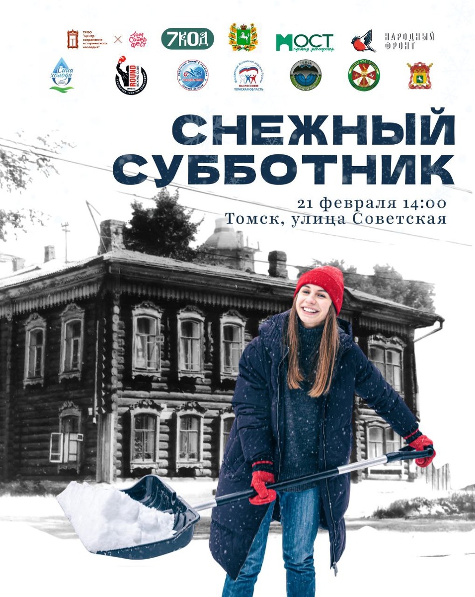 : Зовём на Снежный Субботник В Томске! 21 февраля уже можно ставить в график. В субботу в 14.00 встречаемся на пл. Батенькова и идём дружно убирать снег на Советской. Та самая улица, на которой мы с вами вместе убрали больше 200 тонн мусора. Та самая улица, на примере которой мы с вами вместе решили показать, как здОрово и эффективно объединение на общее благо любимого города. Через волонтёрство и совместный труд И дружбу ❤️ От нас: Лопаты и объятия Крепкие и ласковые на выбор) А также : ✔️ Уха от Юлии Акимовой и "Сила Холода" и Федерации зимнего плавания Томской области "Томские Моржи " ✔️ Чай на Сибирских травах от Молодежки Народного Фронта Томской области ✔️ Вкуснейший чак-чак к чаю от Молодежной Ассамблеи Народов России в Томской области ✔️ Спортивная поддержка от АНО "Боксерский клуб Раунд" имени Гуслякова Г. С. ✔️ Брутальная поддержка от ТРСПОО "Сыны Отечества", Ассоциации Ветеранов разведки и спецназа "В единстве сила" и Томского станичного казачьего общества ТС