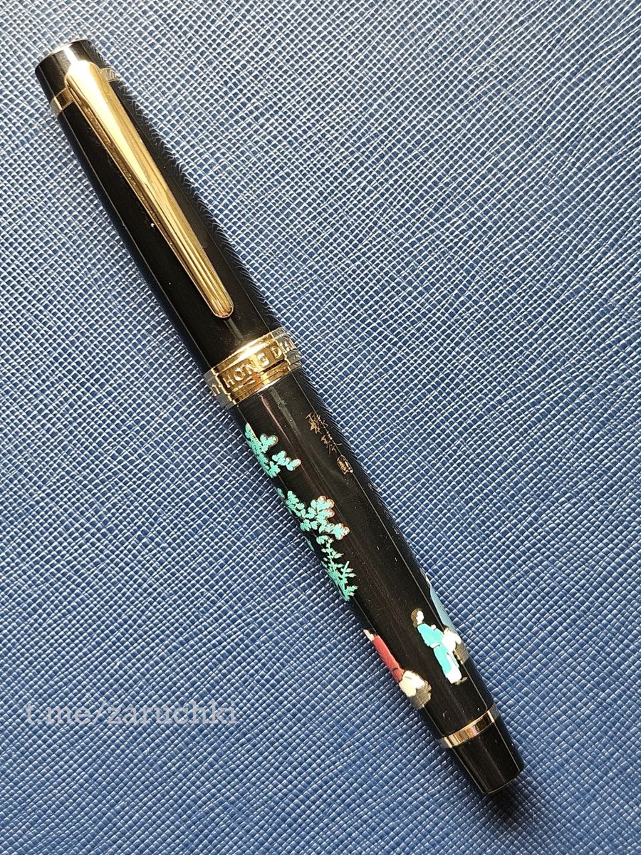 Металлическая ручка с потенциально удобной секцией заинтересовала меня. Я до этого видел похожие Hongdian 1837, но там на вид короче секция, сильнее торчит резьба и ступенька. Хотя выбор рисунков может быть и поинтереснее. На ручке изображена картина "Прослушивание Цинь" и стихотворение императора, описывающее безмятежность процесса. Детали могут и отличаться. Ожидания по корпусу оправдались. Очень комфортная для меня секция. Хороший баланс в руке без перекосов, а ручка довольно увесистая. Перо в поставке идет #5. Я вставил модуль с шестым пером М и новым фидером. Современные перья Hongdian мне очень нравятся. Тут и нечего много писать - все отлично. Колпкак - 1 оборот. Безпроблемная трехзаходная резьба. Очень удобный и приятный инструмент для долгого письма. Ручка как-будто сливается с рукой. Вес - 52.6/34 гр. Длина - 13.7/12.3/6.3 см. Диаметры - 15/14 мм. Секция - 25.5 мм, диаметр - 11 мм.