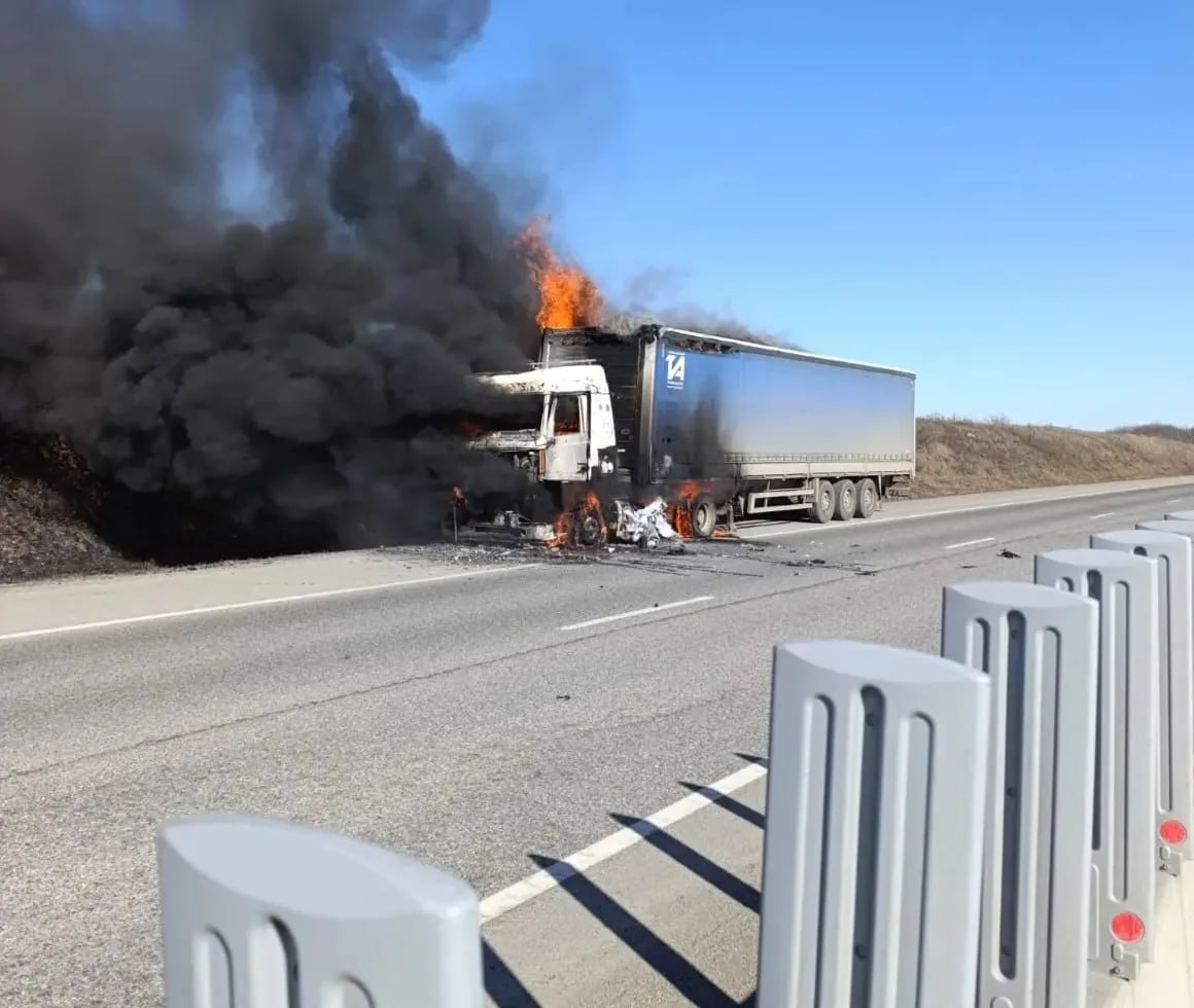 Возгорание произошло сегодня в районе 12 часов. По ходу движения в грузовике МАЗ произошло возгорание моторного отсека, перекинувшееся на полуприцеп. Предварительная причина — техническая неисправность. На месте аварии находятся автоинспекторы. Экстренные службы оперативно потушили возгорание, пострадавших в происшествии нет. Огонь повредил автомобиль и перевозимый груз. Движение транспорта на месте происшествия осуществляется в штатном режиме. ГТРК «Ставрополье» | Читайте нас в MAX