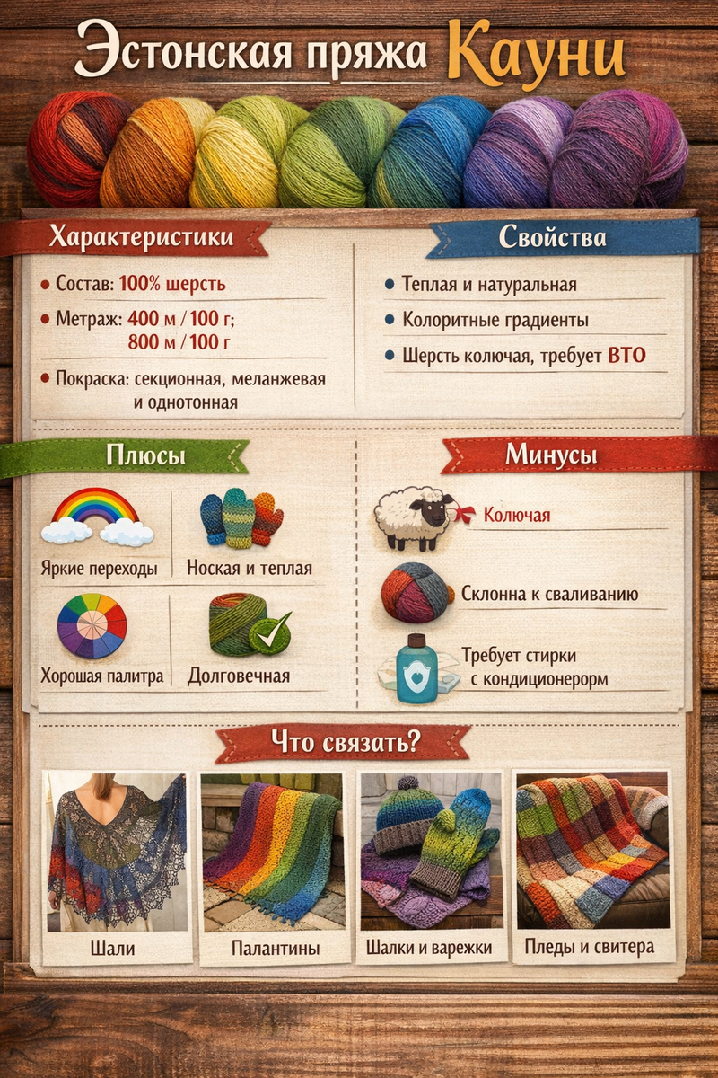 Здравствуйте, мои дорогие рукодельницы! Сегодня я хочу пригласить вас в небольшое путешествие в Эстонию, на родину знаменитой пряжи Кауни. Если вы любите натуральную шерсть и игру цвета так же, как я, то этот обзор для вас. Многие знают, что Кауни производят на фабрике Aade Lõng в эстонском поселке Раазику. Это семейное предприятие работает с 1969 года. Слово Kauni в переводе с эстонского означает - красивый. Из какой шерсти ее делают? Раньше использовали в основном шерсть овец породы Готланд (Gotland) из Швеции и Дании. Но со временем состав стал богаче. Сейчас для мягкости и качества в Кауни добавляют тонкорунную шерсть мериноса из Новой Зеландии и Австралии. Ее смешивают с местной эстонской шерстью. В магазинах мы чаще всего видим два артикула: Мы привыкли, что Кауни - это всегда радуга. Но у фабрики есть потрясающая линейка однотонной пряжи - солиды. Почему на них стоит обратить внимание? Палитра солидов огромна: от нежных пастельных до глубоких природных цветов. Плюсы: Минусы: Де