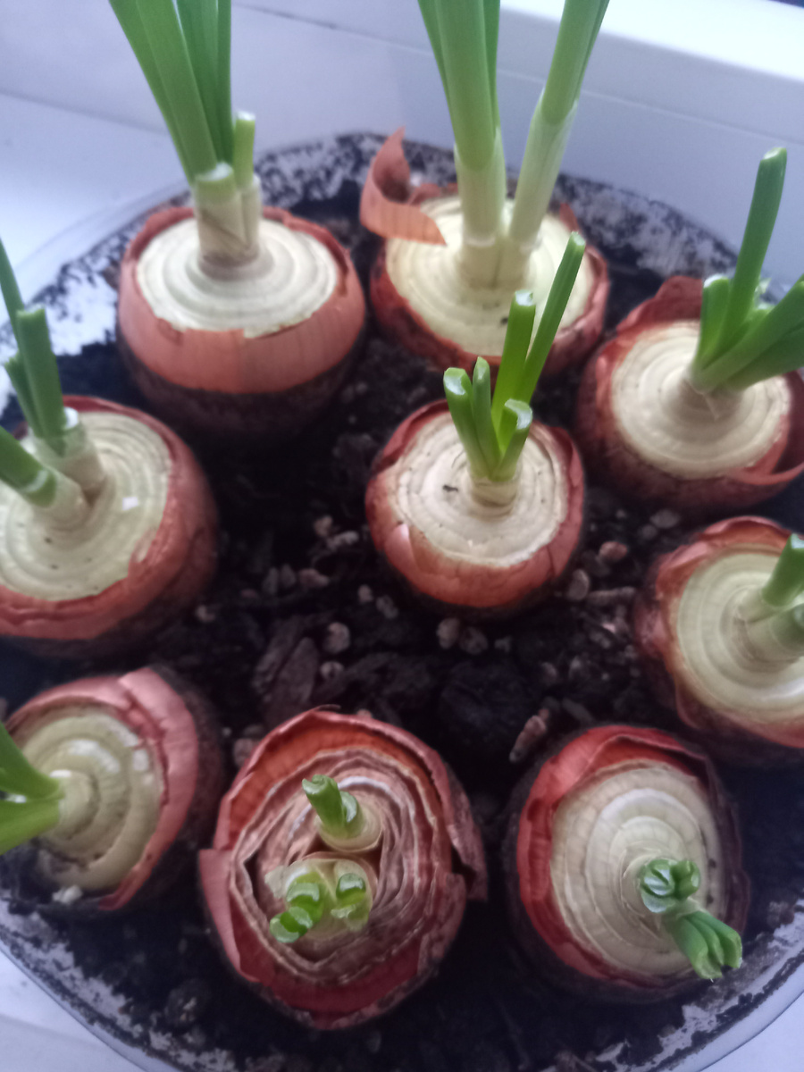 Лук сам по себе немного пророщенный в любом магазине весной.