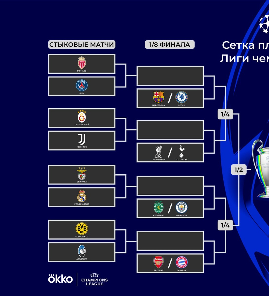 Сетка плей-офф Лиги чемпионов. Рассматривай, сохраняй, делись 🏆