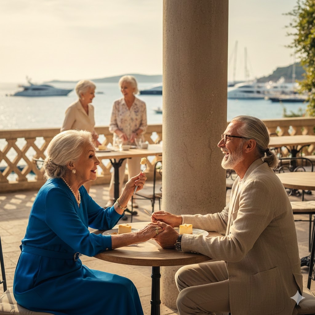 Солнце медленно опускалось за горизонт, превращая воды залива в расплавленное золото. Лидия Марковна, воодушевленная магией круглого столика и парой глотков ледяного просекко, была в ударе. Она как раз дошла до кульминации своего сотого анекдота, активно жестикулируя вилкой, на которой балансировал кусочек нежнейшего чизкейка.