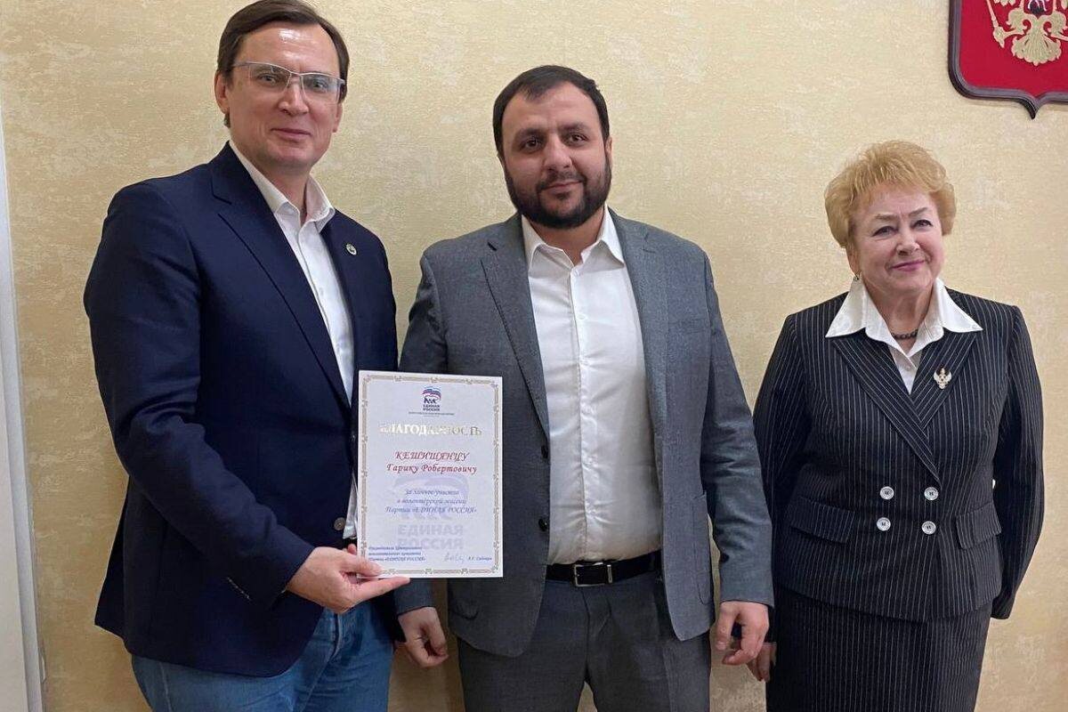 На заседании Думы города-курорта Кисловодска состоялась церемония вручения благодарностей от ЦИК партии Единая Россия самым активным волонтёрам, поддерживающим участников СВО Награды от руководителя ЦИК Александра Сидякина вручили секретарь местного отделения партии Евгений Моисеев и руководитель депутатского объединения в гордуме Любовь Волошина. Благодарственные письма получили: депутат, руководитель фонда «Кисловодск Za Наших» Гарик Кешишянц, координатор фонда «Защитники Отечества», волонтёр «Кисловодск Za Наших» Руслан Ледовских. Вместе с другими активистами с сентября 2022 года Кешишянц и Ледовских организуют сбор и отправку помощи участникам СВО. 📲MAX |💙 ВК|💙 ДЗЕН |💙 ОК