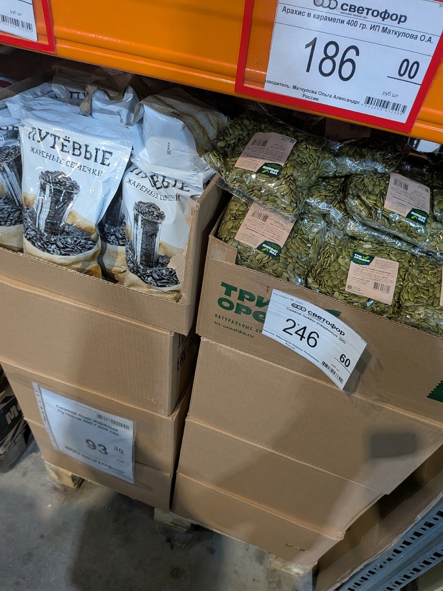 Позвали меня, значит, за компанию съездить в "Светофор", а я что? Если есть возможность поехать на машине, а не общественном транспорте да еще и в хорошей компании, то чего отказываться? Вроде ничего и не нужно из покупок, а вроде и любопытно посмотреть на новинки, авось все же захочу что-то купить, а заодно будет что обсудить с вами. В отношении "Светофора" мне всегда трудно дать однозначную оценку в стиле "разочаровал" или "порадовал", поскольку я с самого начала не жду от него чего-то "вау". Обычный магазин с бюджетным ассортиментом, в котором есть и хорошие товары, и провальные, и вполне себе обычные, и популярные с точки зрения брендов. Хочу поделиться подборкой, кратко рассказав о том, что было в магазине, какие ценники нас там ждали и что в целом из всего этого великолепия захотелось купить, а что побыстрее пропустить. По актуальности, если что, конец января (29 числа мы были в магазине). За что всегда хвалила этот магазин, так это за отдел с орехами и сухофруктами, я постоянно