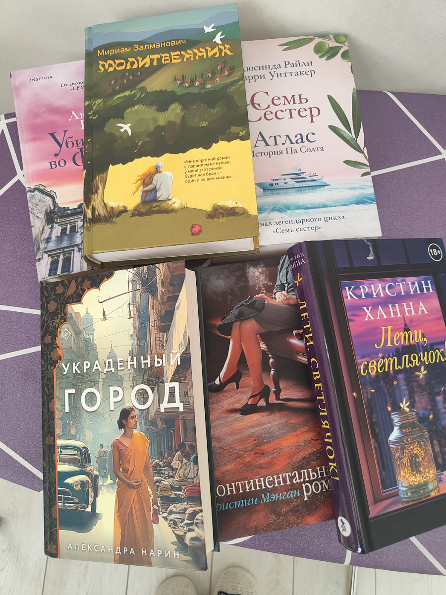 Кристин Ханна и Люсинда Райли одни из моих любимых современных писателей. К сожалению, Райли не стало пять лет назад, в возрасте 57 лет, но её цикл романов "Семь сестёр" прочитала с удовольствием. А в целом, всё, что издано в России не прошло мимо. Вот и парочка новеньких появилась на прилавках.. Я только выбирала, оплатили мои девчонки. Кто в курсе, какая сегодня на книги цена, тот меня поймет. "Континентальный роман" довольно известное произведение, экранизировано. "Украденный город" от российского автора, но с индийским колоритом.. Думаю, интересно будет . "Лети светлячок"-продолжение большого романа Кристин Ханны "Улица светлячков". О взаимоотношениях близких людей, которые не всегда способны понимать друг друга. "Молитвенник", ранее ничего не читала от автора Мириам Залманович. Вроде как семейная сага от истории спасения во время Холокоста, до защиты себя и своих близких , от Латвии до Израиля. От сороковых прошлого века до нынешних дней. Когда у меня есть чтиво, чувствую себя