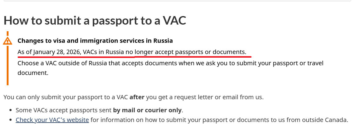 С 28 января визовые центры Канады в России полностью прекратили прием паспортов для оформления виз