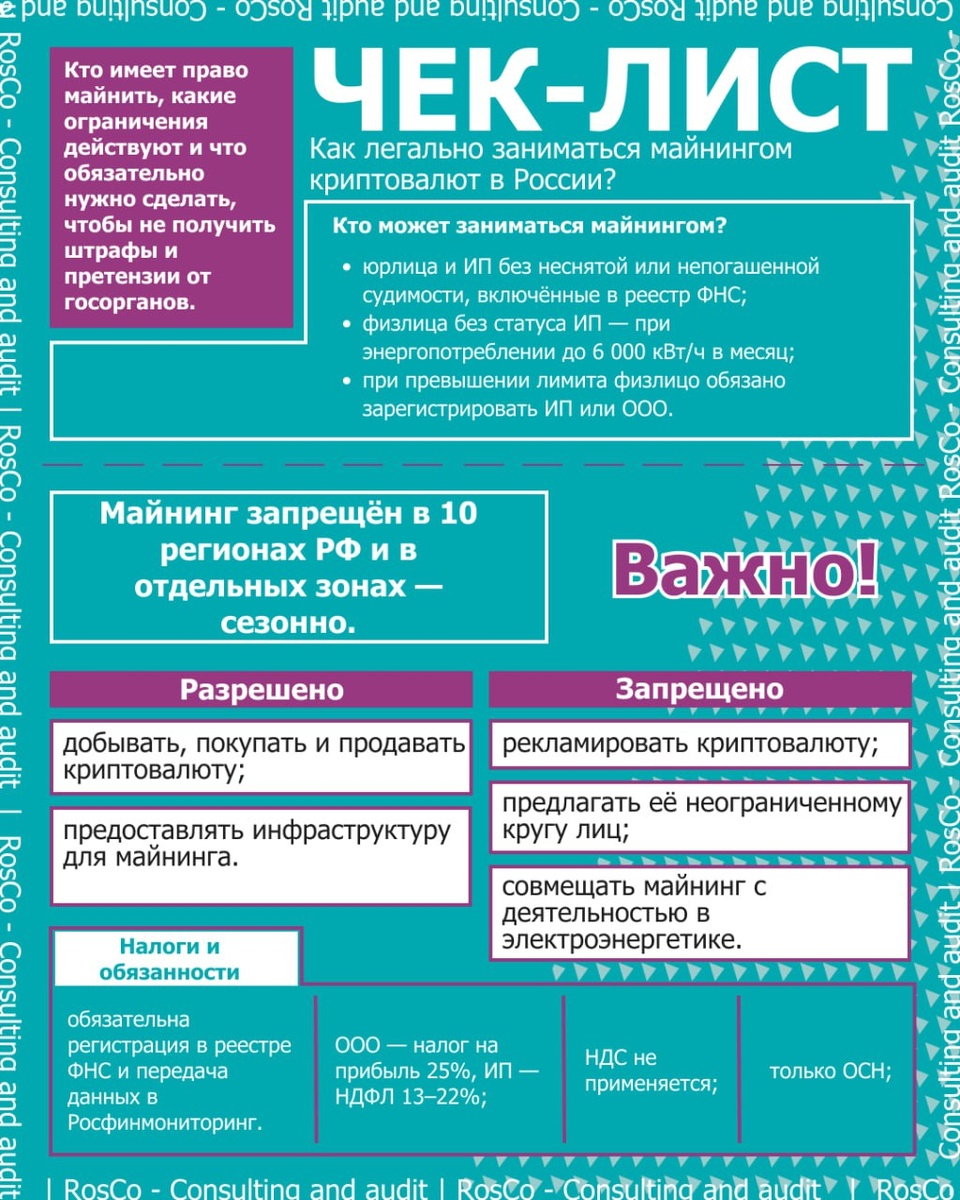 β ΡΠ΅Π·ΠΎΠ½Π½ΠΎ. βοΈ Π Π°Π·ΡΠ΅ΡΠ΅Π½ΠΎ / Π·Π°ΠΏΡΠ΅ΡΠ΅Π½ΠΎ ΠΠΎΠΆΠ½ΠΎ: πΈ Π΄ΠΎΠ±ΡΠ²Π°ΡΡ, ΠΏΠΎΠΊΡΠΏΠ°ΡΡ ΠΈ ΠΏΡΠΎΠ΄Π°Π²Π°ΡΡ ΠΊΡΠΈΠΏΡΠΎΠ²Π°Π»ΡΡΡ; πΈ ΠΏΡΠ΅Π΄ΠΎΡΡΠ°Π²Π»ΡΡΡ ΠΈΠ½ΡΡΠ°ΡΡΡΡΠΊΡΡΡΡ Π΄Π»Ρ ΠΌΠ°ΠΉΠ½ΠΈΠ½Π³Π°. ΠΠ΅Π»ΡΠ·Ρ: πΈ ΡΠ΅ΠΊΠ»Π°ΠΌΠΈΡΠΎΠ²Π°ΡΡ ΠΊΡΠΈΠΏΡΠΎΠ²Π°Π»ΡΡΡ; πΈ ΠΏΡΠ΅Π΄Π»Π°Π³Π°ΡΡ Π΅Ρ Π½Π΅ΠΎΠ³ΡΠ°Π½ΠΈΡΠ΅Π½Π½ΠΎΠΌΡ ΠΊΡΡΠ³Ρ Π»ΠΈΡ; πΈ ΡΠΎΠ²ΠΌΠ΅ΡΠ°ΡΡ ΠΌΠ°ΠΉΠ½ΠΈΠ½Π³ Ρ Π΄Π΅ΡΡΠ΅Π»ΡΠ½ΠΎΡΡΡΡ Π² ΡΠ»Π΅ΠΊΡΡΠΎΡΠ½Π΅ΡΠ³Π΅ΡΠΈΠΊΠ΅. π ΠΠ°Π»ΠΎΠ³ΠΈ ΠΈ ΠΎΠ±ΡΠ·Π°Π½Π½ΠΎΡΡΠΈ πΈ ΡΠΎΠ»ΡΠΊΠΎ ΠΠ‘Π; πΈ ΠΠΠ β Π½Π°Π»ΠΎΠ³ Π½Π° ΠΏΡΠΈΠ±ΡΠ»Ρ 25%, ΠΠ β ΠΠΠ€Π 13β22%; πΈ ΠΠΠ‘ Π½Π΅ ΠΏΡΠΈΠΌΠ΅Π½ΡΠ΅ΡΡΡ; πΈ ΠΎΠ±ΡΠ·Π°ΡΠ΅Π»ΡΠ½Π° ΡΠ΅Π³ΠΈΡΡΡΠ°ΡΠΈΡ Π² ΡΠ΅Π΅ΡΡΡΠ΅ Π€ΠΠ‘ ΠΈ ΠΏΠ΅ΡΠ΅Π΄Π°ΡΠ° Π΄Π°Π½Π½ΡΡ
