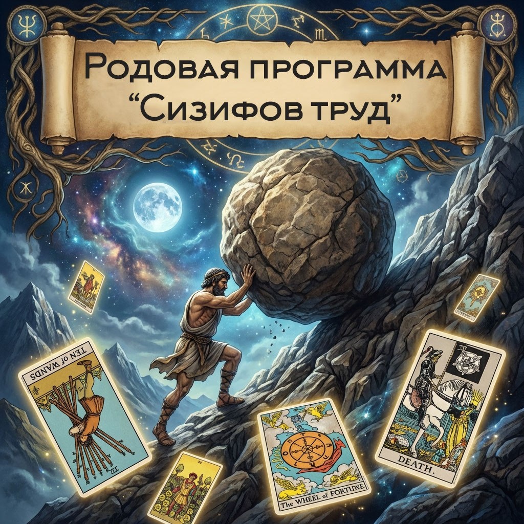 » Некоторые родовые сценарии (паттерны) практически незаметны, поскольку период их проявления очень большой. Довольно часто в раскладах мне встречается программа, которую я называю «Сизифов труд» или «Недостижимая вершина»... Например, открывает человек бизнес, вроде не дурак, всё продумал и неплохо разбирается в теме. Работает по 14 часов в сутки. Всё постепенно начинает складываться как нужно, всё вроде получается: клиенты идут, появляются первые постоянные, деньги потихоньку капают, команда подобралась. Ещё немного, совсем чуть-чуть... И тут... бах... Пандемия, война, закон «упрощающий» ведение бизнеса. Или что-то более прозаичное: ключевой сотрудник уходит, алгоритмы соцсетей меняются, партнёр оказывается мошенником, здоровье даёт сбой. Одним словом, происходит нечто непредсказуемое и всё рушится на финишной прямой... И начинает человек заново. Он вообще не привык падать духом и отступать. Фиксирует убытки, устраивается в найм и снова копит ресурсы и снова запускают следующий пр