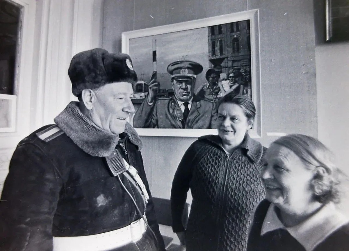 Когда приехали в Томск учиться в середине 80-ых годов прошлого века, в первую же зиму нас поразил регулировщик на перекрёстке Ленина-Нахановича. В самые лютые морозы он только гуще краснел лицом и был виден лучше любых, не очень надёжных в те годы светофоров. Все томичи помладше звали его "Дядя Коля". Постарше именовали уважительно: Николай Платонович. Потом уже, когда стали работать в программе новостей, снимали с Путинцевым интервью и репортажи. Городская легенда гласила: первую рюмку зимой, чтобы согреться, "Дядя Коля" выпивал строго в полдень в Нижнем гастрономе через дорогу (это нынешняя Мария Ра). Там его любая продавщица знала. Вторая рюмка позволялась уже после обеда. Так или не так, кто ж теперь скажет. На фото Николай Платонович Путинцев в областном управлении ГАИ на фоне собственного портрета, который когда-то висел в холле уважаемого ведомства на Иркутском тракте. А теперь хранится в гараже семьи Путинцевых. Так что это двойной портрет. Жива и верная спутница жизни Никола