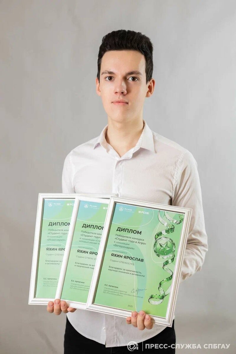 ! 🏆 Гордимся студентом Царскосельского аграрно-технологического колледжа СПбГАУ! Ярослав Яхин вошел в ТОП-3 лучших участников конкурса «Студент года в Агро». Декабрь стал для Ярослава по-настоящему победным: за блестящее решение кейсов он получил крутой и полезный гаджет — умную колонку! Напомним, что Ярослав держит планку лидера еще с сентября, ежемесячно становясь призером конкурса. 🚀 Твой черед побеждать! До дедлайна по первому заданию конкурса «Я в Агро» осталось всего 2 дня. Не упускай возможность заявить о себе: 1. Заходи в личный кабинет. 2. Выполняй задание. 3. Отправляй проект!