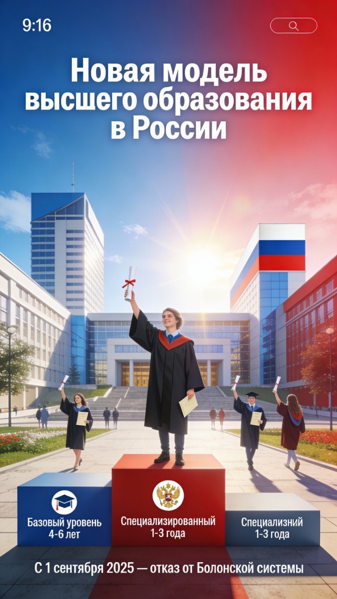 С нового учебного года в России начнётся поэтапный переход на новую модель высшего образования. Вместо привычных бакалавриата и магистратуры появятся: Базовый уровень — 4–6 лет. Специализированный уровень — 1–3 года Уже с 1 сентября к реформе подключатся ведущие университеты — МГТУ им. Баумана, МФТИ, РНИМУ им. Пирогова, Уральский, Дальневосточный и Южный федеральные. Полный переход всех вузов планируется к 2027–2028 годам. В Минобрнауки уверяют: студенты изменений бояться не должны. Наш канал в Max, вступайте Источник: Открыть