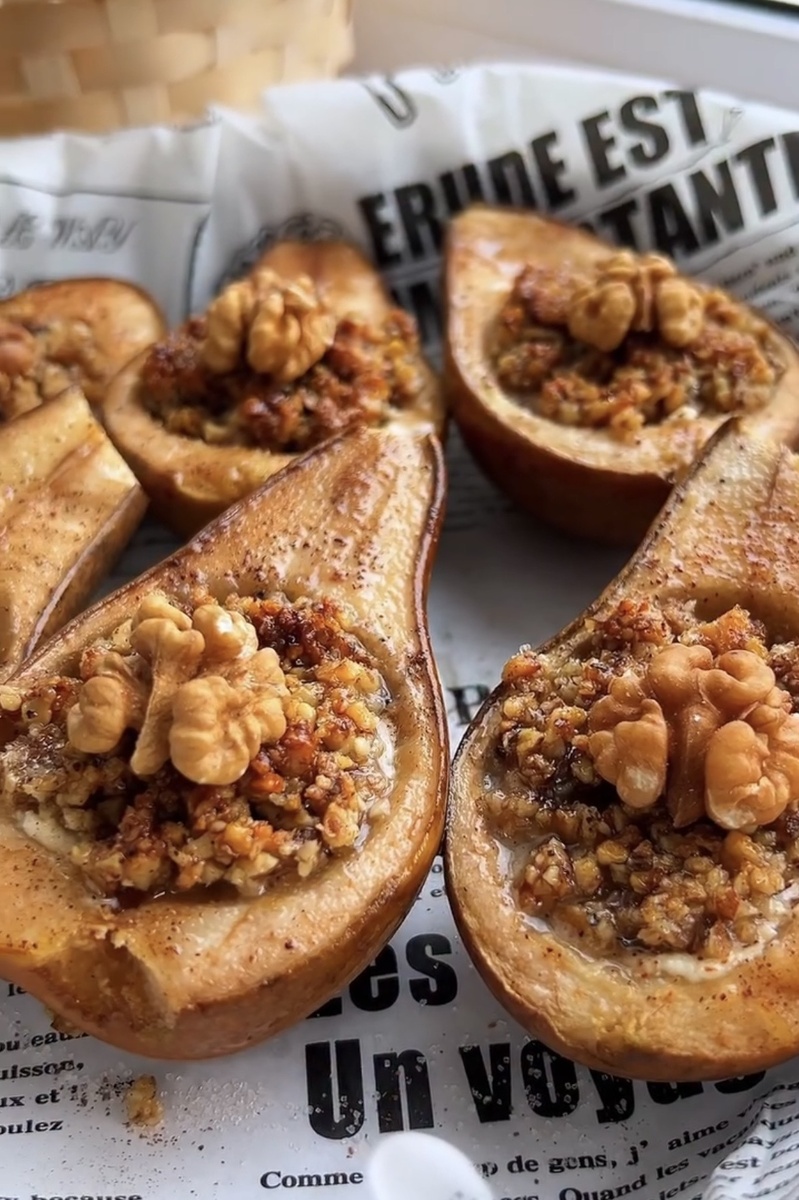 Запеченная груша с медом, грецкими орехами и творогом 😍